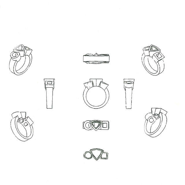 La bague Alchimie Trilogie a été imaginée à l'occasion d'un concours de Trilogie organisé par le Centre du diamant dans les années 90. Elle a d'abord été dessinée de deux façons différentes puis réalisée en prototypes. La trilogie qui a été retenue n'était pas la préférée de Philippe Tournaire : la plus jolie sur le papier ne donnait pas le plus bel effet en réalité. Ce modèle iconique de la Maison a nécessité plusieurs années d'évolution pour atteindre la version actuelle parfaitement équilibrée et harmonieuse.