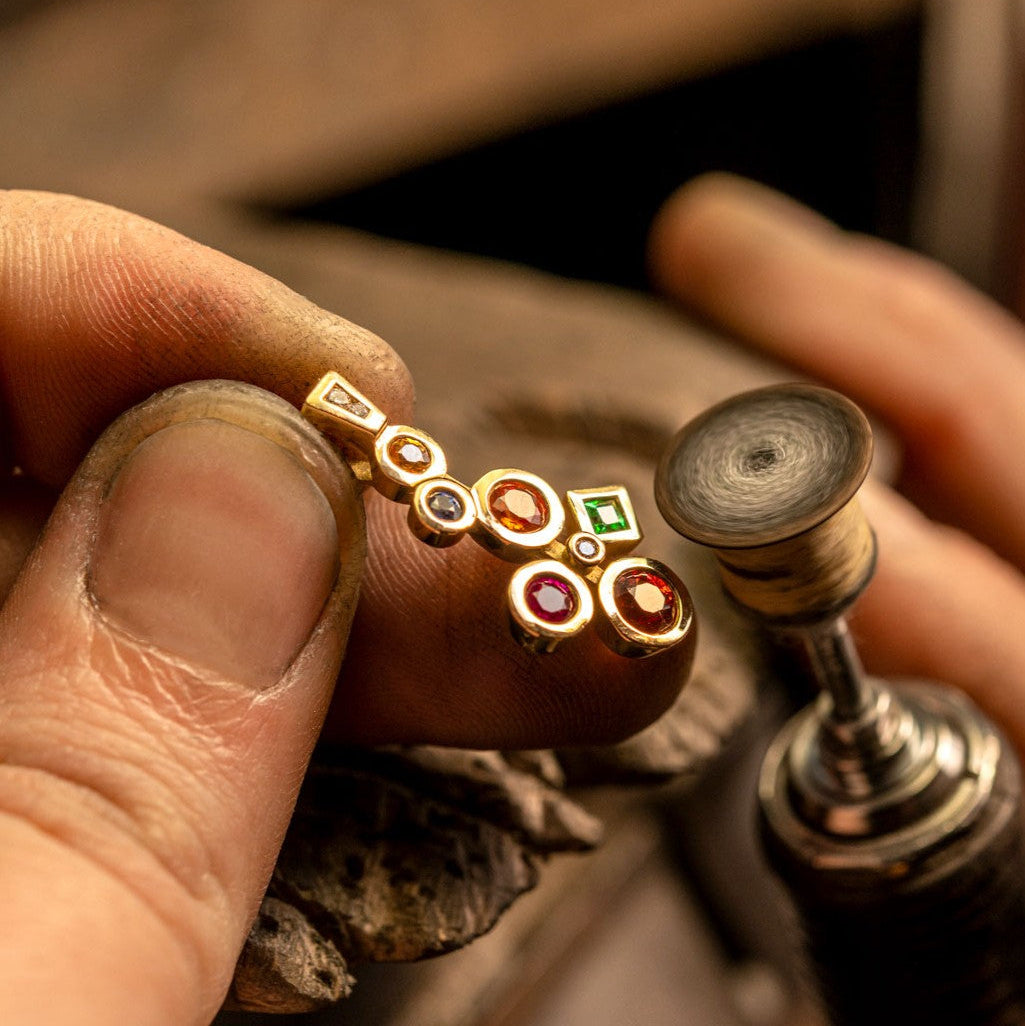 Toutes les créations sont conçues et fabriquées exclusivement dans notre manufacture en France. Pour concevoir et façonner leurs bijoux les deux artistes joailliers utilisent les matériaux les plus nobles (or jaune, or blanc et or rose) qui peuvent être sertis de pierres précieuses d'exception sélectionnées par des joailliers experts.