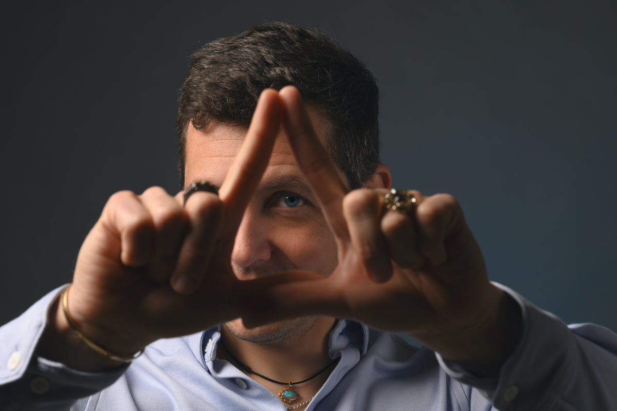 L’une de ses premières œuvres marquantes est le bracelet Free, né d’une réflexion sur le détournement d’objets. Il explore les formes et les matériaux, inspiré par ses lectures sur l’ethnologie, l’astronomie et l’histoire. Cette approche instinctive et avant-gardiste pose les bases de son style unique, mêlant influences antiques et contemporaines.