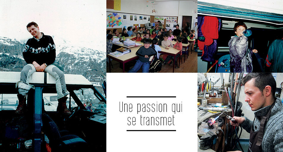 Je suis "tombé dans l’atelier" quand j’étais petit. Mes premiers souvenirs marquants avec mon père sont ceux où nous étions à la boutique, rue Tupinerie. Je me rappelle quand je réalisais mes premiers bijoux ou quand je jouais avec les pierres de couleurs. Il y avait aussi des moments où mon père me laissait tâtonner avec les cailloux précieux à la recherche d’harmonies de couleurs pour des bijoux.